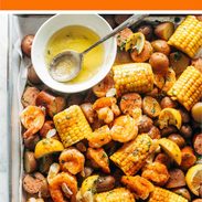 Boiled this up tonight used honey garlic sausage and spinach feta sausage ( Costco) huge hit with those from 2 – 68! Even the pescatarian was happy, for him I cooked the sausages at the end. It was a rainy night so we ate inside but this would be an excellent meal for a patio dinner. We debated the merits of perhaps grilling everything instead of boiling ( we’re Canadian and boiled anything with the exception of eggs, lobster and potatoes is not in our wheel house) and decided that parboiling the corn and potatoes and finishing them on the grill would speed things up for a large crowd, the shrimp and sausage don’t take any time. As usual per POY it’s a keeper!!